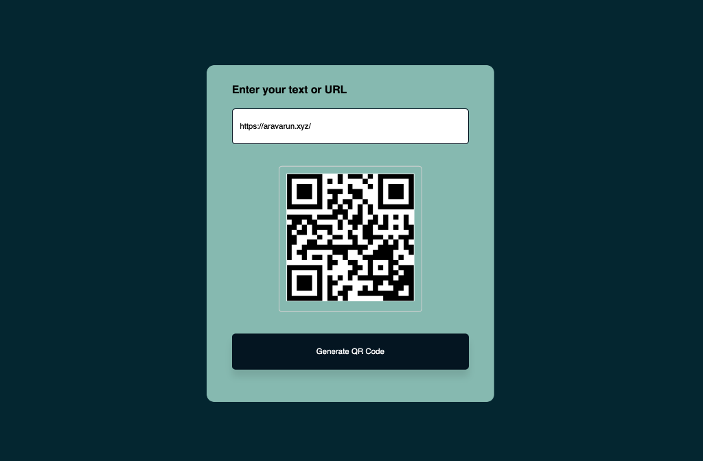 A simple web app that generates QR codes for text or URLs using an external API, with an animation prompt when no input is provided.